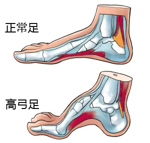 高弓足顧名思義指的是側(cè)面觀足弓高起,在行走或者負重過程中過程失去彈性,不能相對變平,從而不能完成正常站立和行走功能。由于足弓的改變而失去彈性,使得行走過程中足部受力部位位于前足足趾和后足足跟,部分畸形較重患者還合并足內(nèi)翻導(dǎo)致足部受力位于足部外側(cè)緣。長時間的受力位置改變可引起胼胝形成,受力部位疼痛,同時由于改變了下肢的力學(xué)環(huán)境還可能使患者站立或者行走過程中感覺疲勞。嚴重的病例可以引起踝關(guān)節(jié)甚至膝關(guān)節(jié)的退變。